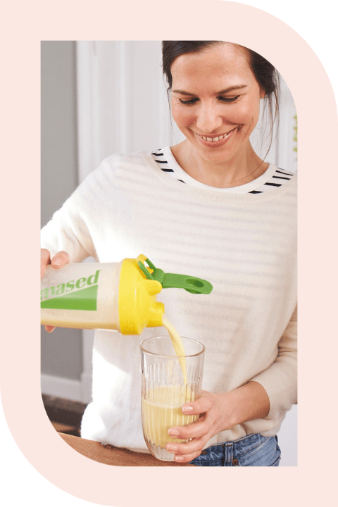 3. Rühren Sie Ihren Shake mit bis zu 200ml fettarmer Milch oder Buttermilch an.
