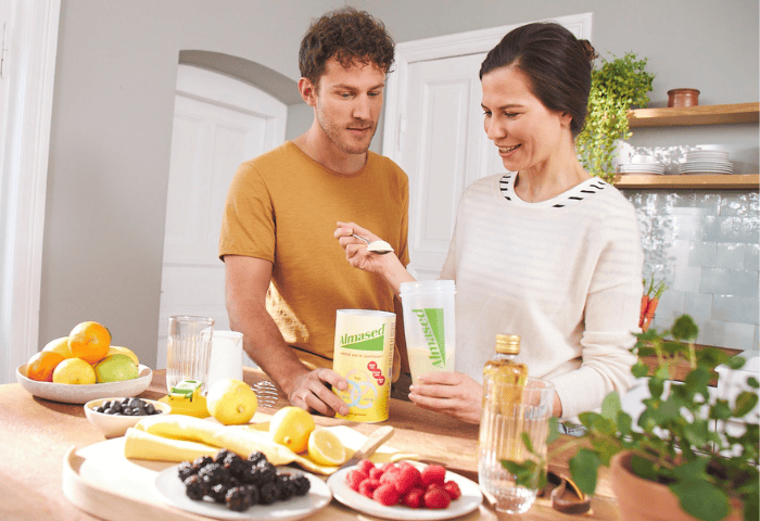 Außerdem verzichtet Almased bewusst auf Maltodextrin und künstliche Süßstoffe. Das Ergebnis: ein Shake, der nicht nur sättigt und beim Abnehmen hilft, sondern vor allem den Stoffwechsel gezielt unterstützt und damit deutlich wirkungsvoller ist als herkömmliche Mahlzeitenersatzprodukte oder reine Proteinshakes.