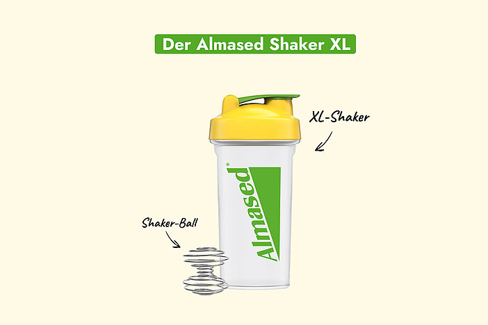 Dann ist der Almased Shaker XL der ideale Begleiter. Er sorgt für eine schnelle, klümpchenfreie Zubereitung und macht Ihren Almased Shake besonders unkompliziert, ob zu Hause oder unterwegs. Praktisch, funktional und perfekt für den Alltag.